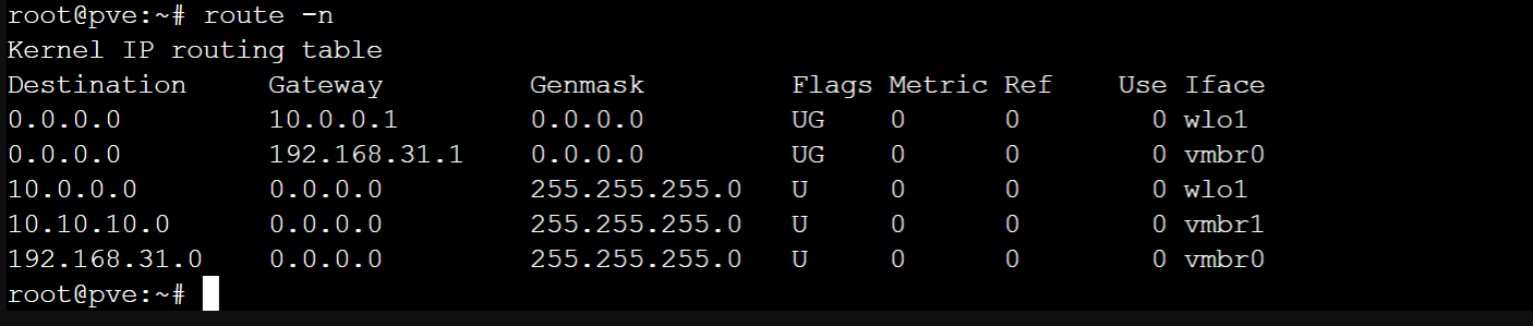 route add -net 0.0.0.0/0 gw 10.0.0.1 dev wlo1