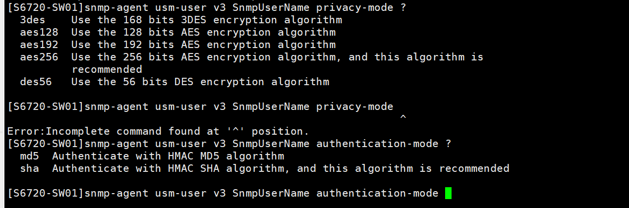 snmp-agent usm-user v3 SnmpUserName authentication-mode sha [回车输入密码]