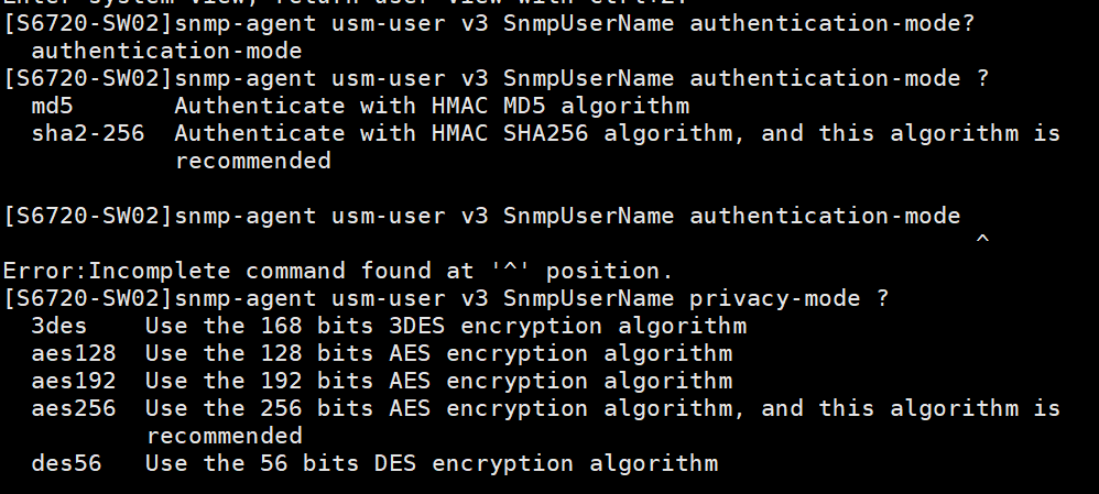 snmp-agent usm-user v3 SnmpUserName privacy-mode aes128 [回车输入密码]